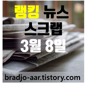 오늘의 랭킹 뉴스 스크랩 입니다. (매일경제, 중앙일보, JTBC, YTN, MBC).